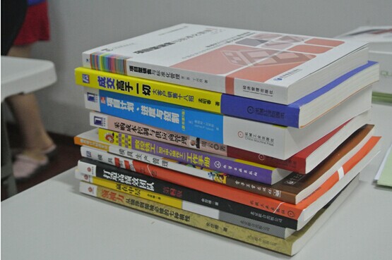 桌面上堆放的是公司为每位主管购买的学习参考资料)