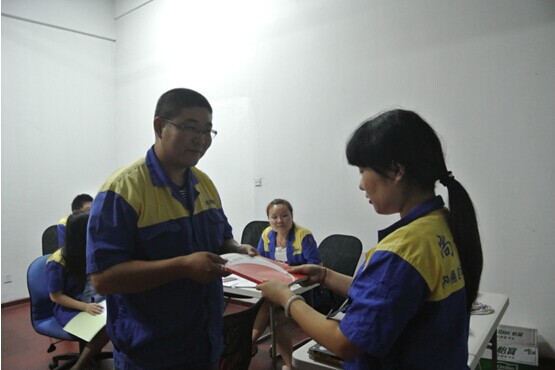 为每一位主管发放学习资料。