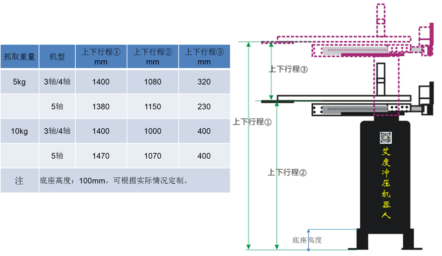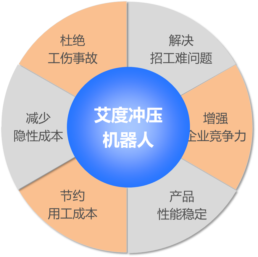 在冲床和模具已投资情况下,可后期再进行自动化改造 | 必须在产品投产前一并规划冲床、模具与机械手,适用单品种大批量生产 | 在冲床和模具已经投资情况下,后期可再进行自动化生产改造,适用多品种,小、中、大批量生产 |