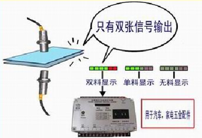 传感器对于有料、无料或者材料叠加时,产生的感应不一样,输出不同的信号,防止叠加材料进入模具进行生产,对模具起保护作用。